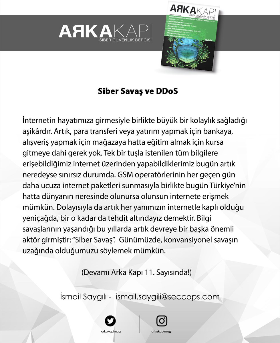 Sosyal Medyaya Kursun Isleyebilir Fikirlere Kursun Islemez Arka Kapi Dergi Turkiye Nin Hacker Dergisi 2 Ayda Bir Yayimlanir Siber Guvenlik Dergisi